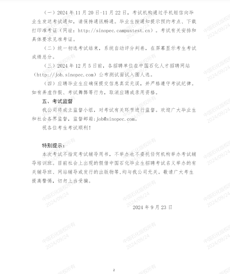 中国石化2025年度毕业生招聘统一初选考试公告