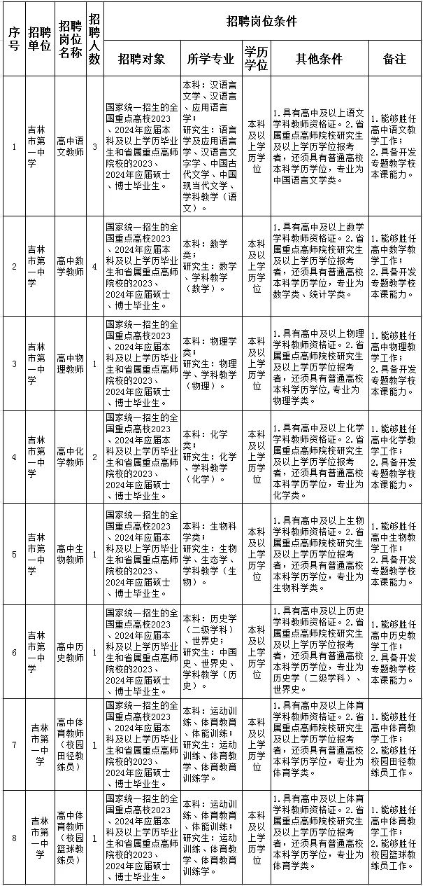 附件:1.《2023年吉林市第一中学专项招聘急需紧缺人才岗位及条件一览表》