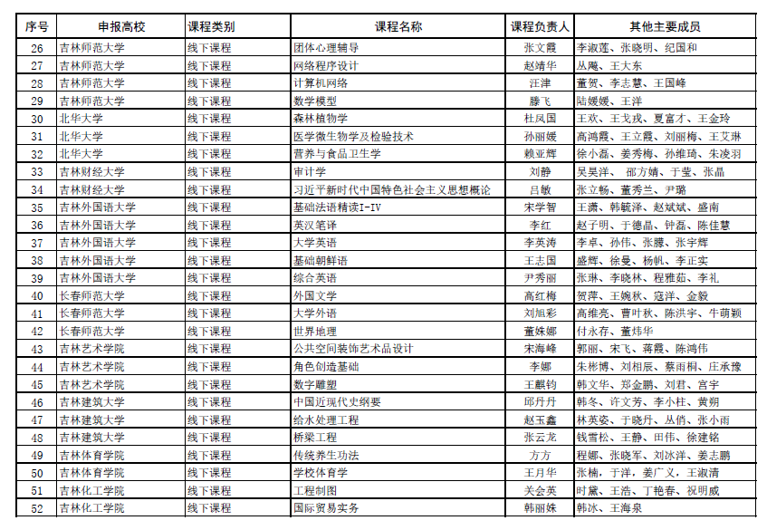 第三批国家级一流课程 吉林省推荐课程名单公示